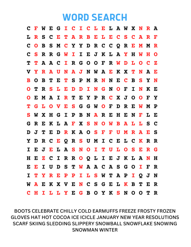 Solved word search from the January 2026 magazine.