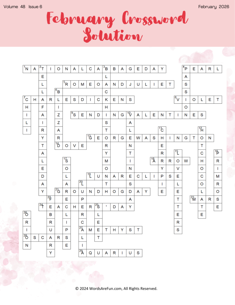 Solved crossword puzzle from February magazine.