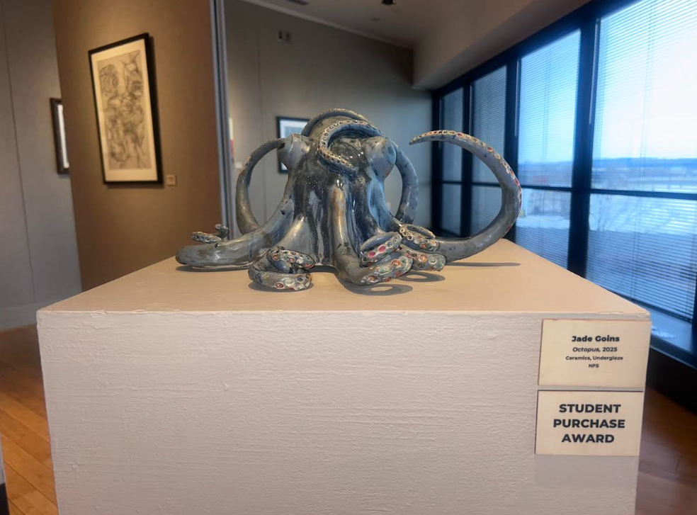 “The juror… looked at all of the artwork and then decided which pieces would make a strong cohesive exhibition,” Darrah said. This year’s juror was Britney Wainwright from Ohio State University.